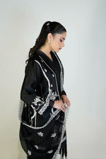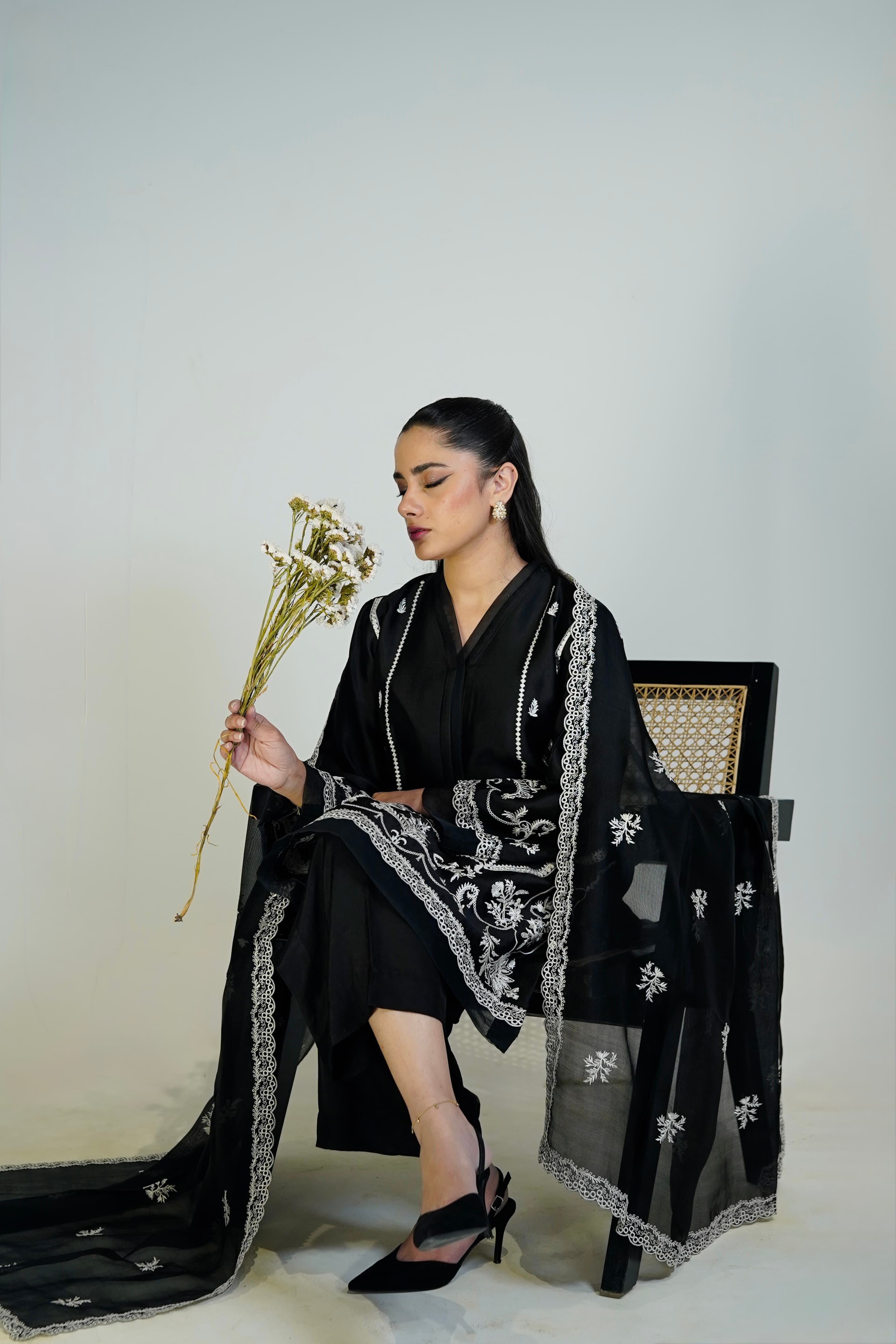 Classic black, adorned with delicate embroidery. A timeless Sheesha Silk 3-piece from The Signature Capsule